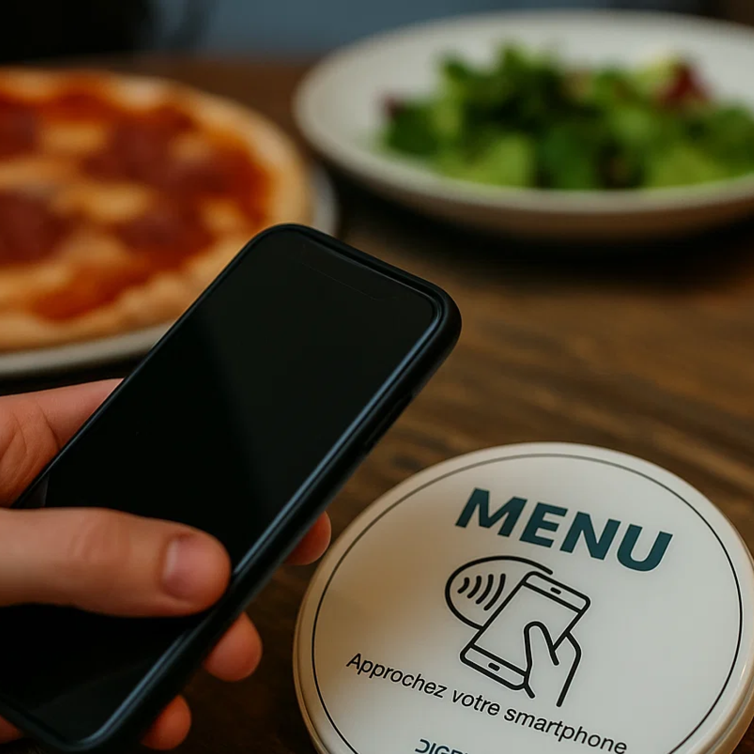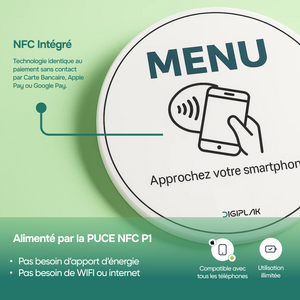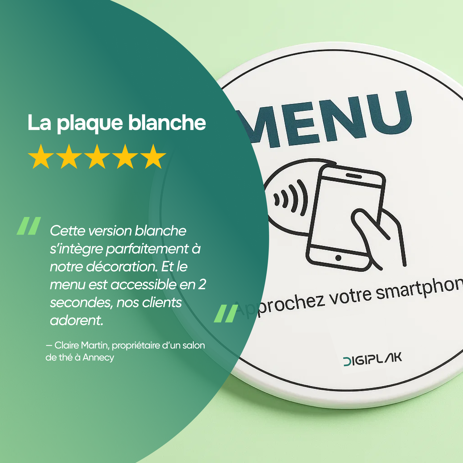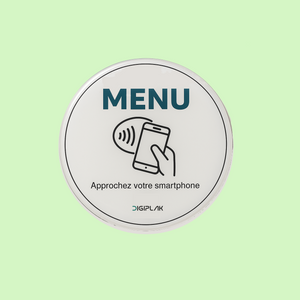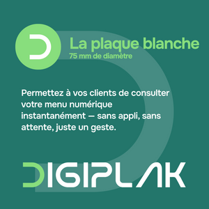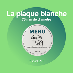 Avec son diamètre de 75 mm, la plaque blanche NFC offre un format plus grand pour une meilleure visibilité. Son design épuré et moderne s’adapte à tous les environnements professionnels et attire facilement l’attention de vos clients et visiteurs.