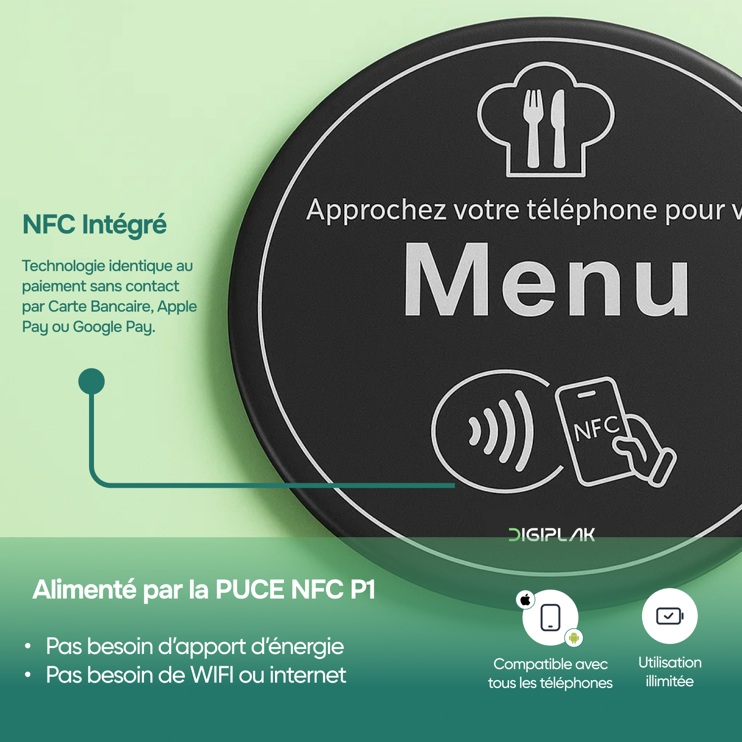Plaque noire NFC – Élégance et modernité au format compact (60 mm)